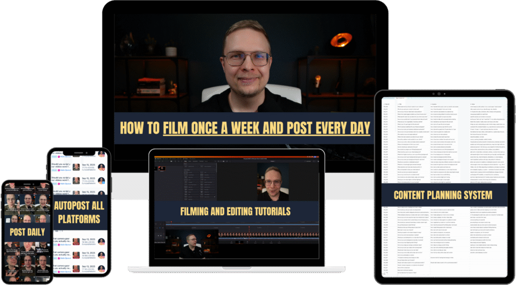 You’ll see my exact process for planning content categories, finding video ideas, filming efficiently, editing quickly, and scheduling everything automatically across all platforms.